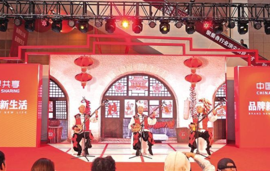 5月10日,在2023年中国品牌日活动推介现场,来自陕西的民间艺人正在为观众表演陕北说书。5月10日,2023年中国品牌日活动在上海开幕。隆基绿能、陕汽集团、陕西粮农、宝钛集团等50个陕西知名品牌,通...