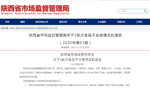 2020-11-27阅读全文 >>记者从陕西省市场监督管理局官网获悉,近日省市监局组织对蜂产品、食用油、油脂及其制品等7大类食品164批次样品进行了食品安全监督抽检,其中蜂产品、食用油、油脂及其制品2大...