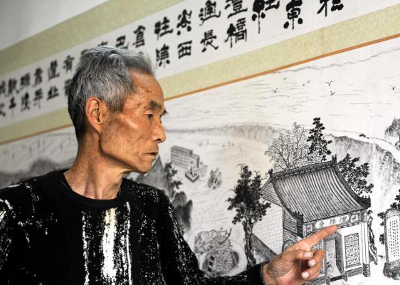 2023-04-18阅读全文 >>“画《古渡春秋图》最初的想法,就是把曾经在这片土地上存在过的建筑和民风民俗记录下来,让后人能够通过它了解过去的咸阳。”陕西省咸阳市七旬老人王元利在接受中新网记者采访时表示。图为图中顶拐玩闹的...
