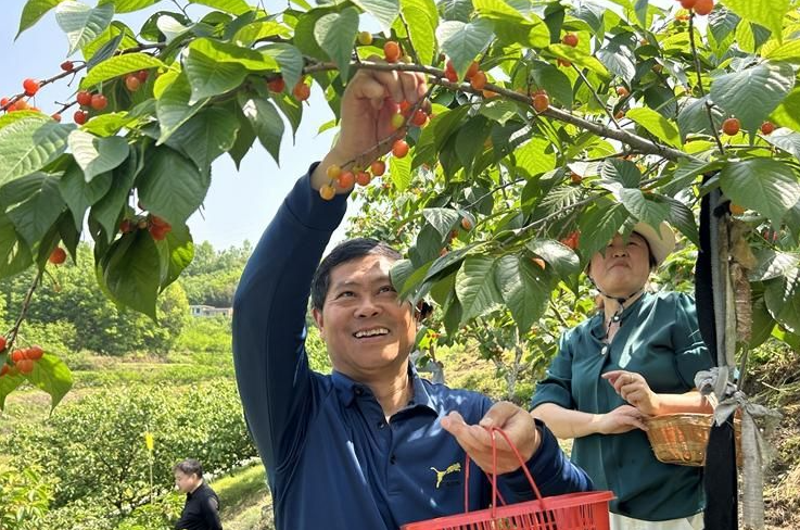 游客体验采摘樱桃。眼下,安康市汉阴县城关镇月河村李家沟的樱桃进入成熟期,不少游客趁着好天气,一边欣赏美丽的风景,一边品尝甜蜜的樱桃,享受采摘带来的乐趣。走进月河村李家沟,房前屋后、漫山遍野全是枝繁叶茂...